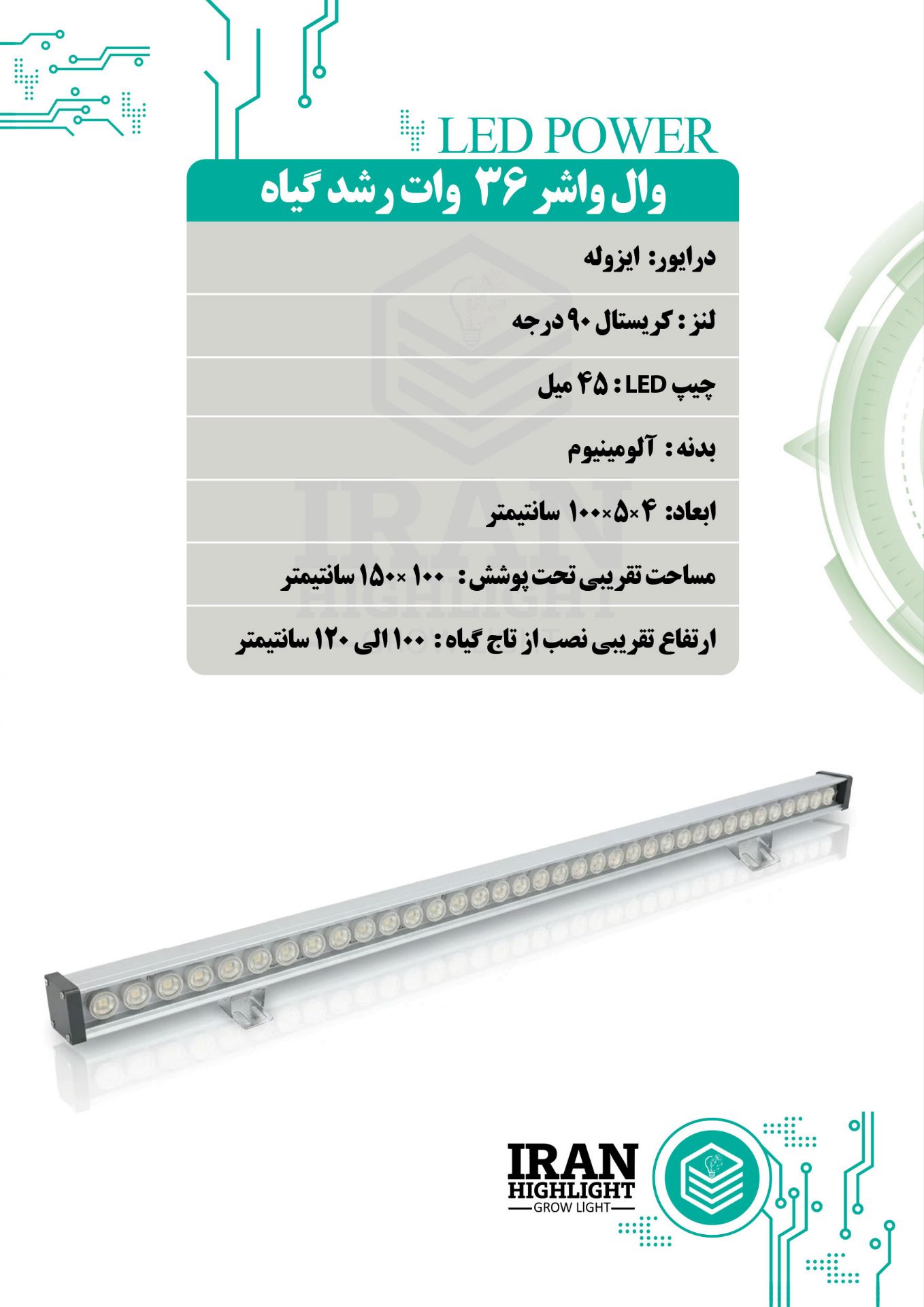 لامپ رشد گیاه ۳۶ وات ( تصویر مربوط به لامپ 18 وات میباشد , محصول ارسالی قطعا 36 وات خواهد بود ) خروجی رنگ سفید مناسب برای فضای 2 در 4